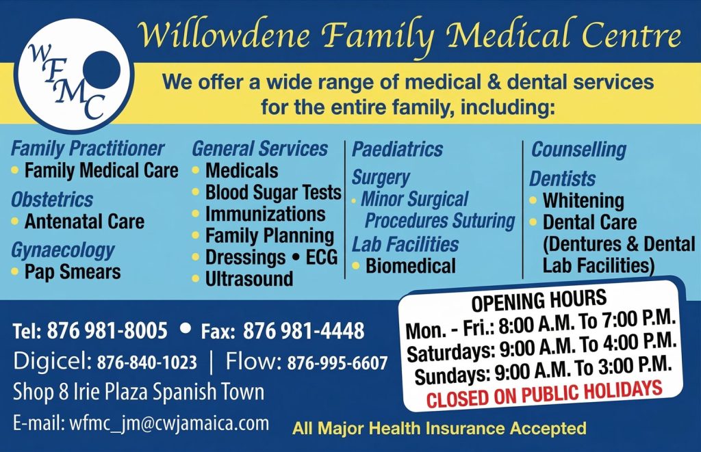 Willowdene Family Medical Centre has been offering family health care services to the surrounding communities of Spanish Town, St Catherine, Jamaica, for over 10 years.
